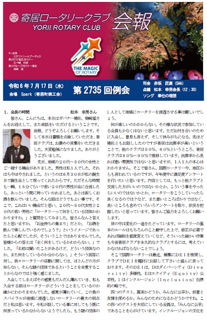 2024-07-24 会報No.2(2024.7.17) 会報 No.2を掲載いたします。 ※クリックにて、PDFが開きますので全文を確認いただけます。 Home › 会報 › 2024-2025 › 会報No.2(2024.7.17) 関連記事 会報No.2(2022.7.13) 会報No.7(2023.9.27) 会報No.26(2024.6.19) 会報 No.17(2022.6.1) 会報No.16(2023.1.18) 会報No.1(2024.7.3) 会報No.3(2024.7.24)