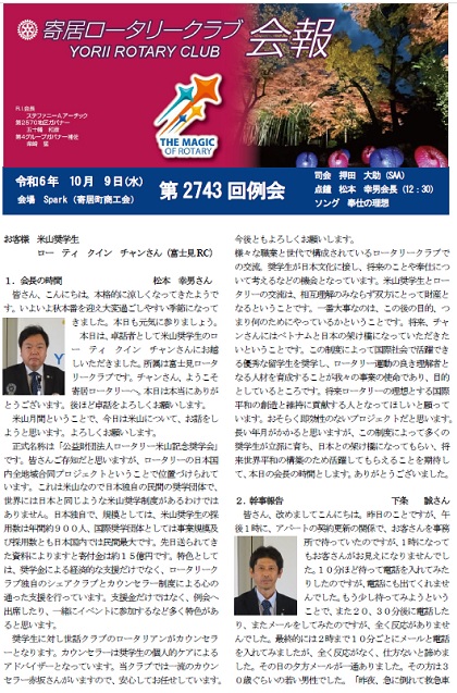 2024-10-23 会報No.9(2024.10.9) 会報 No.9を掲載いたします。 ※クリックにて、PDFが開きますので全文を確認いただけます。 Home › 会報 › 2024-2025 › 会報No.9(2024.10.9) 関連記事 会報No.3(2025.7.23) 会報No.8(2025.10.1) 会報No.10(2023.11.08) 会報No.3(2022.7.27) 会報No.16(2023.1.18) 会報No.7(2024.9.11) 会報No.8(2024.10.2)