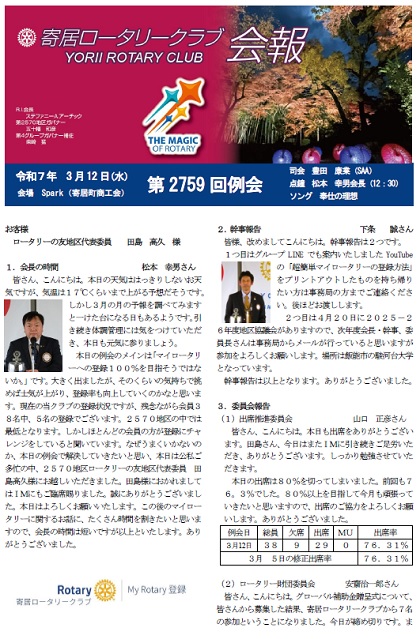 2025-03-26 会報No.19(2025.3.12) 会報 No.19を掲載いたします。 ※クリックにて、PDFが開きますので全文を確認いただけます。 Home › 会報 › 2024-2025 › 会報No.19(2025.3.12) 関連記事 会報No.23(2025.5.21) 会報No.3(2024.7.24) 会報No.6(2024.9.4) 会報No.10(2024.11.13) 会報No.20(2025.4.2) 会報No.18(2025.3.5) 会報No.20(2025.4.2)