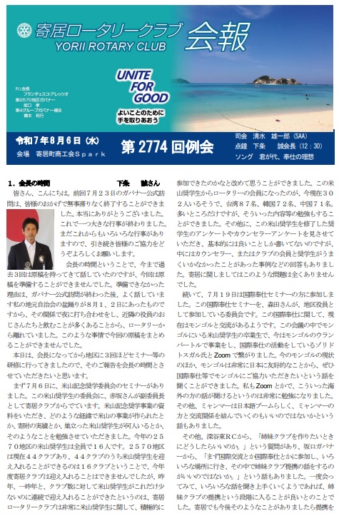 2025-08-20 会報No.4(2025.8.6) 会報 No.4を掲載いたします。 ※クリックにて、PDFが開きますので全文を確認いただけます。 Home › 会報 › 2025-2026 › 会報No.4(2025.8.6) 関連記事 会報No.12(2024.12.18) 会報No.2(2024.7.17) 会報No.11(2025.12.3) 会報No.18(2024.3.6) 会報No.6(2024.9.4) 会報No.3(2025.7.23) 会報No.5(2025.8.20)