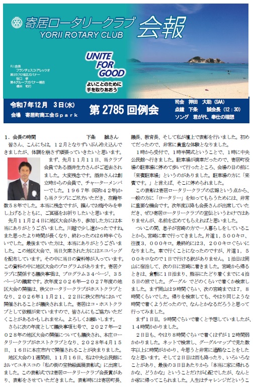 2025-12-17 会報No.11(2025.12.3) 会報 No.11を掲載いたします。 ※クリックにて、PDFが開きますので全文を確認いただけます。 Home › 会報 › 2025-2026 › 会報No.11(2025.12.3) 関連記事 会報No.17(2024.2.7) 会報No.25(2024.6.12) 会報No.24(2023.6.7) 会報No.26(2023.6.21) 会報No.18(2024.3.6) 会報No.10(2025.11.12) 会報No.12(2025.12.17)
