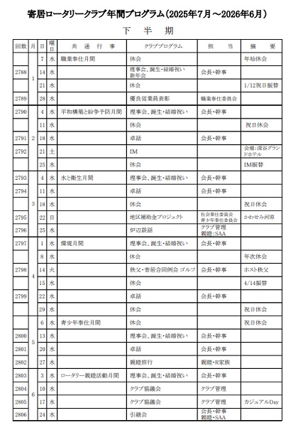 ※年間行事予定は、変更になる場合もございます。